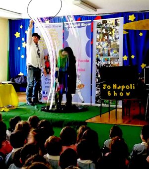 Scegli lo spettacolo live tra il Bubble Show (mega bolle giganti voleranno, ed effetti speciali coinvolgeranno tutti i bambini) Lo spettacolo dei burattini (dall'antica tradizione napoletana Pulcinella con le sue storie divertenti e piene di sorprese allegrera' tutti i presenti) Magic Show (un mix tra clownweria e magia con grande protagonismo dei bambini) Fiabe animate (un grande mix di fiabe, riviste in modo ironico con i bambini veri protagonisti, i quali saranno allo stesso tempo sia spettatori che protagonisti)